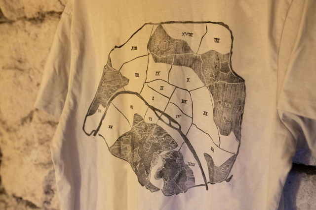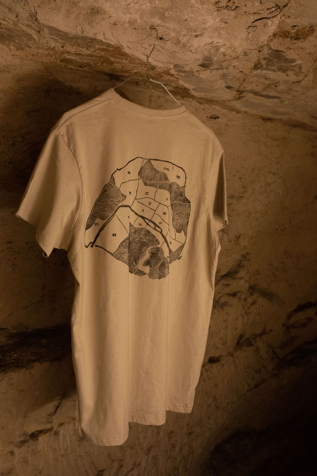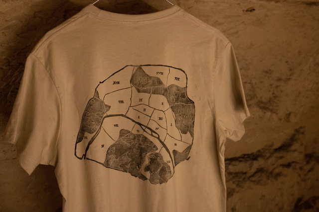 T shirt 100% coton avec impression en linogravure sur le torse gauche.